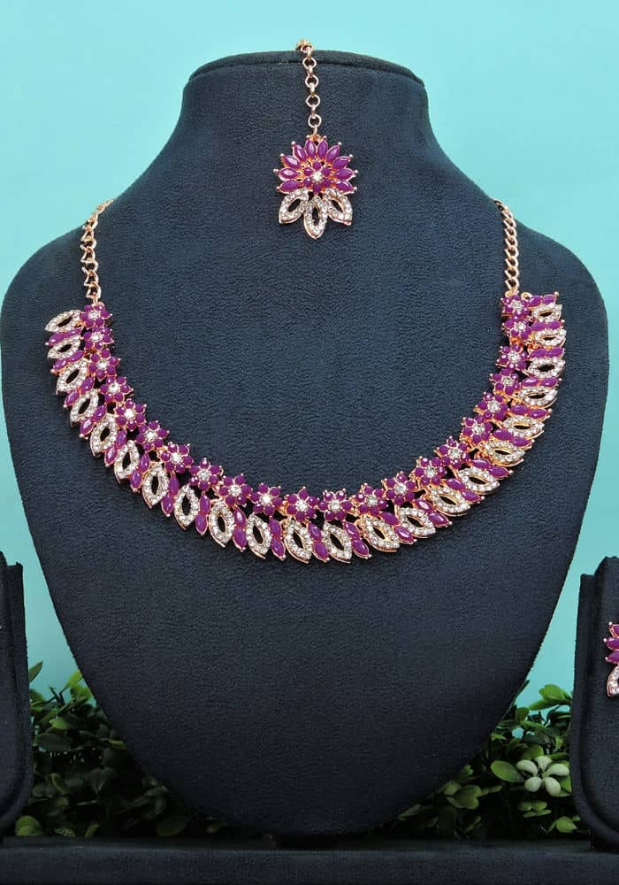 Admirable Dark Magenta Necklace Set