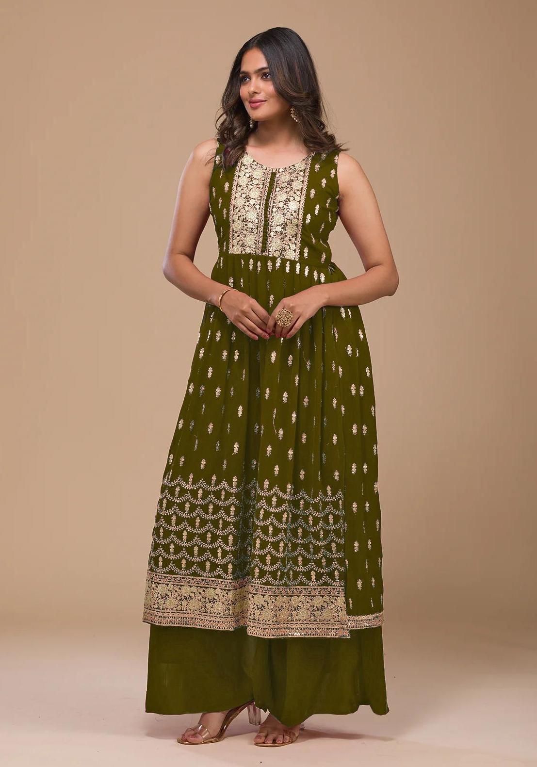 Admirable Georgette Green Straight Cut Salwar Kameez