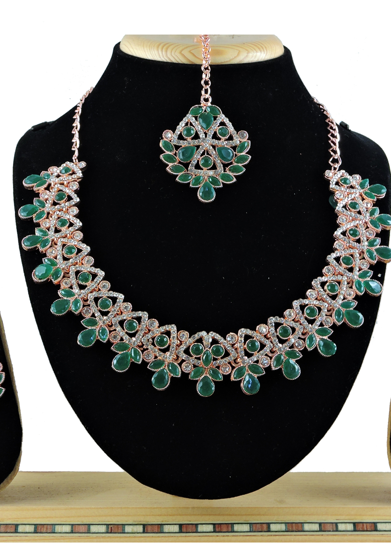 Details: 1 Necklace Set, 2 Earrings, 1 Mang Tikka.