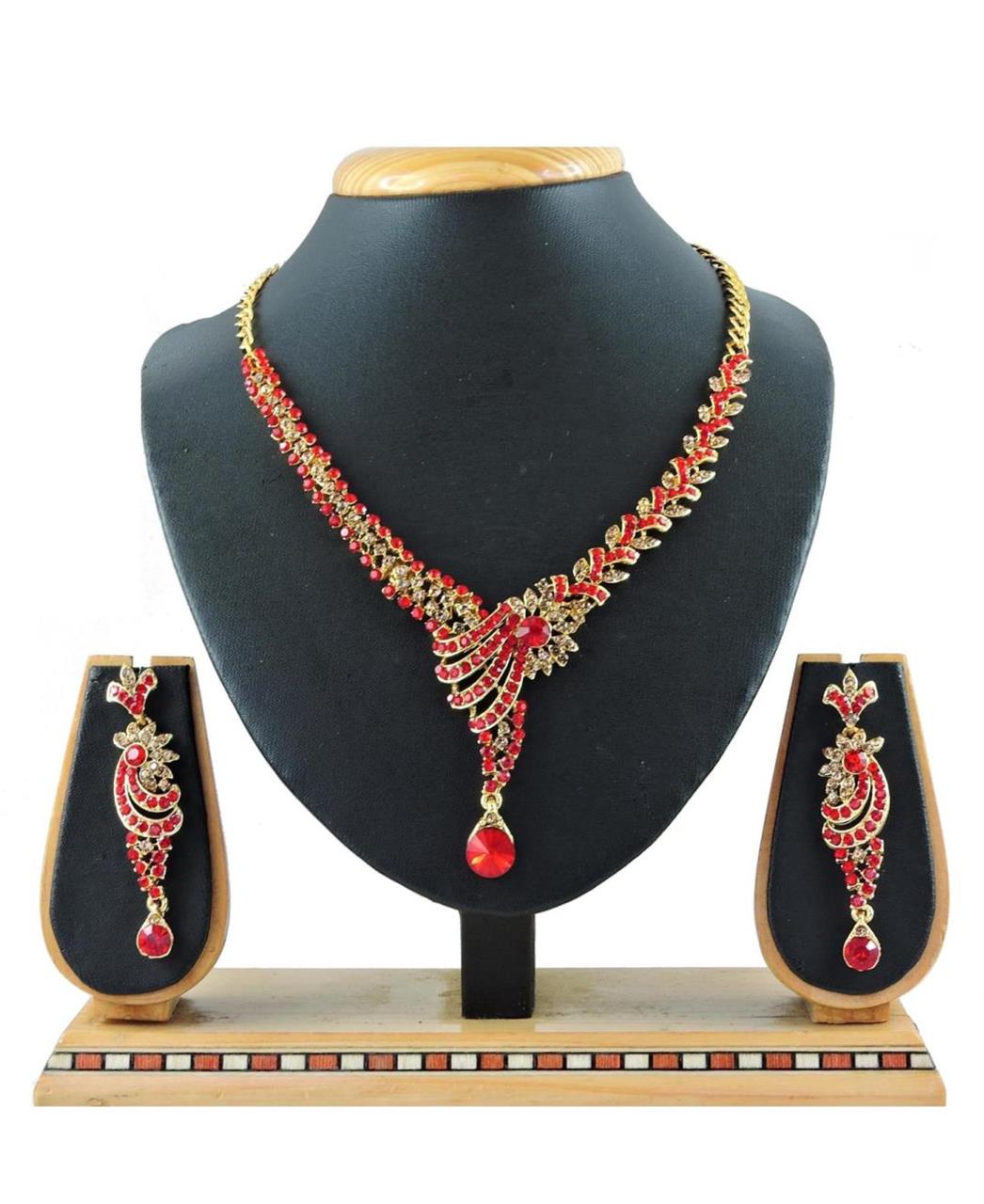 Buy Admirable Red & Gold Necklace Set Jewellery Neckless For Women