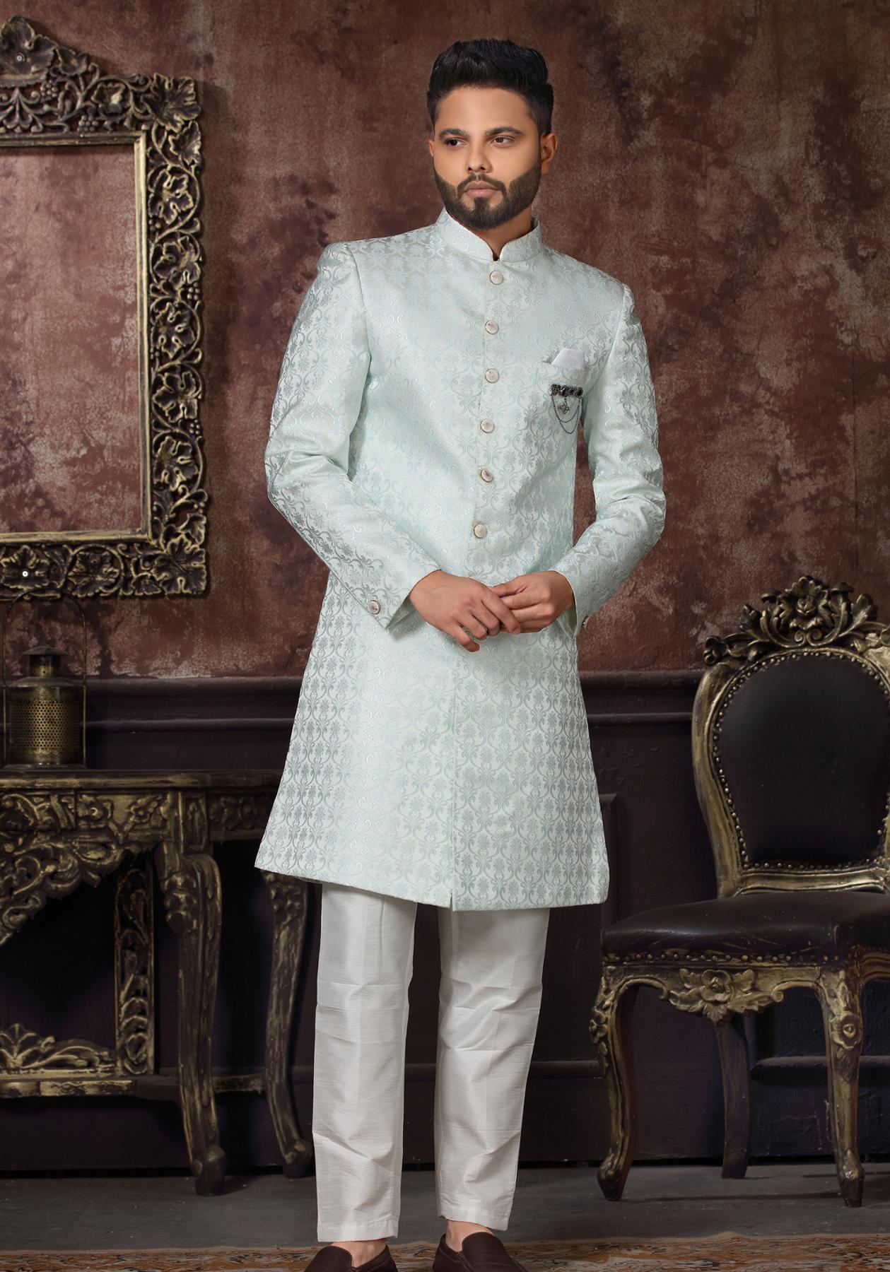 Buy Admirable Silk Light Steel Blue Indo Western online.