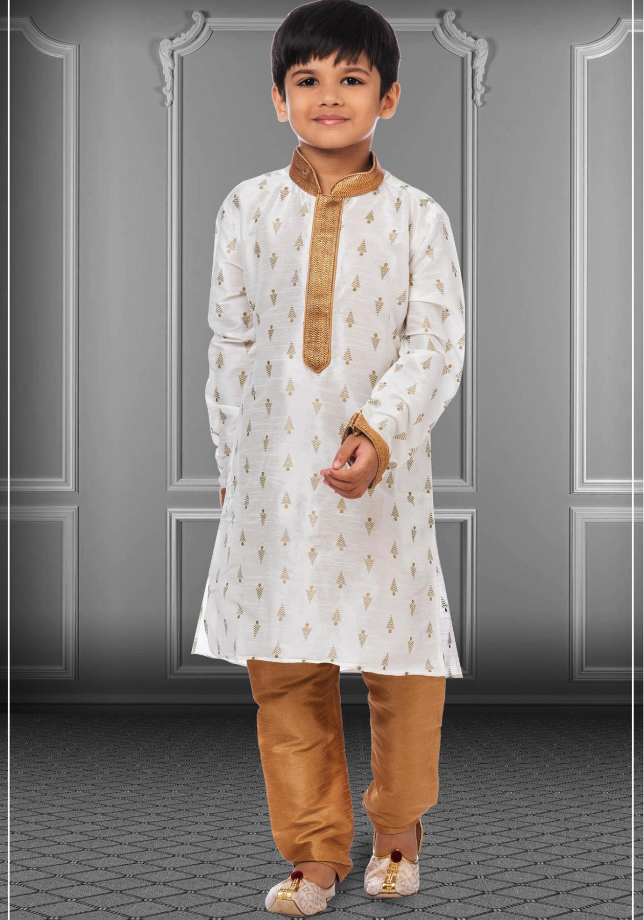 • Admirable Silk White Kids Kurta Pyjama