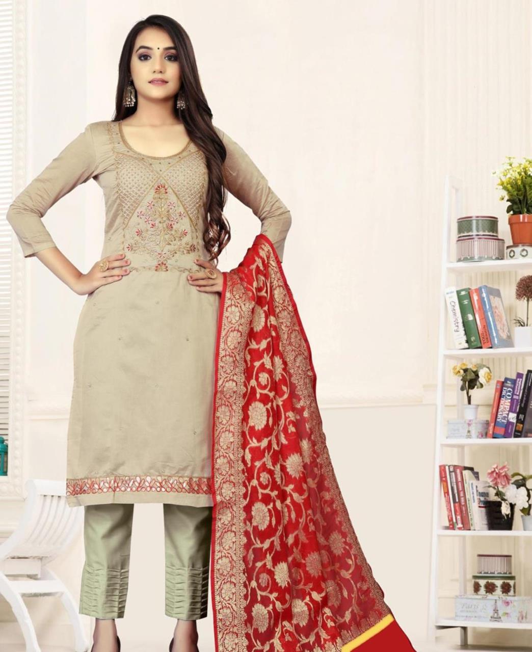 Normally size is measured between the underarm stitching lines from the stressed kameez.