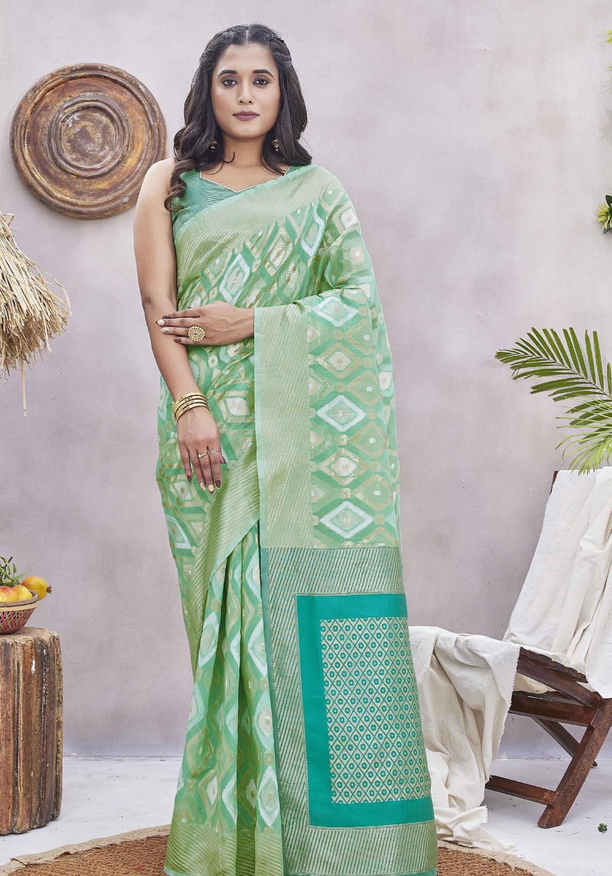 Buy Alluring Linen & Silk Dark Sea Green Saree online.