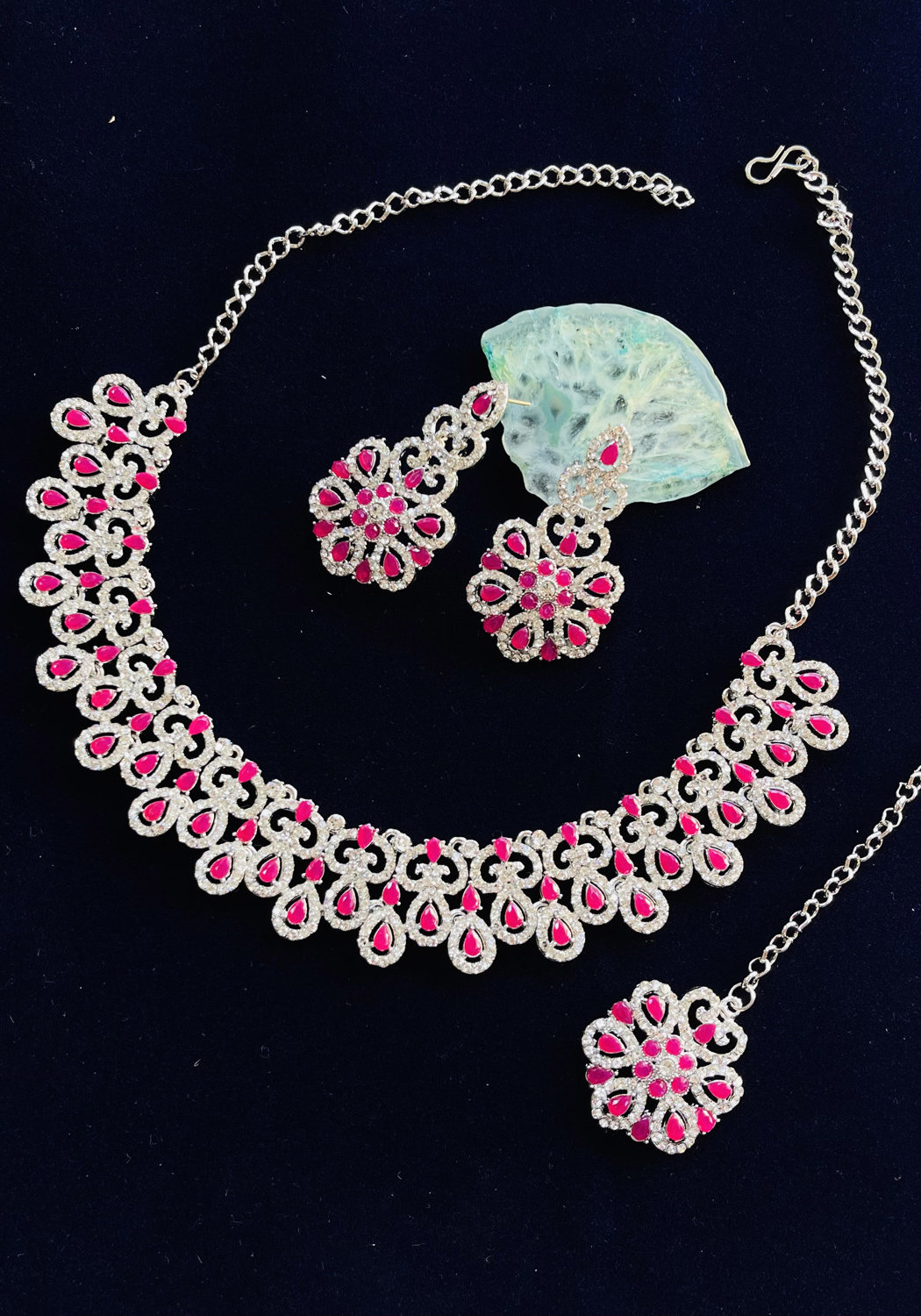 Details: 1 Necklace Set, 2 Earrings, 1 Mang Tikka.