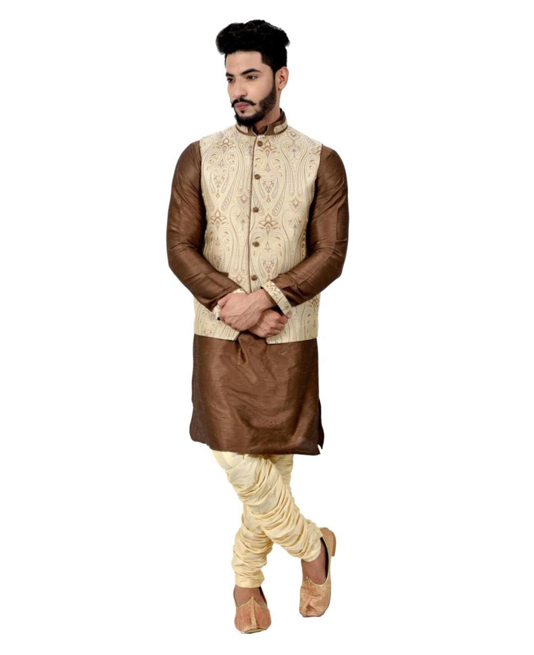 Fabric: Kurta- Art silk, Nehru Jacket - Brocade silk, Bottom - Art Silk.