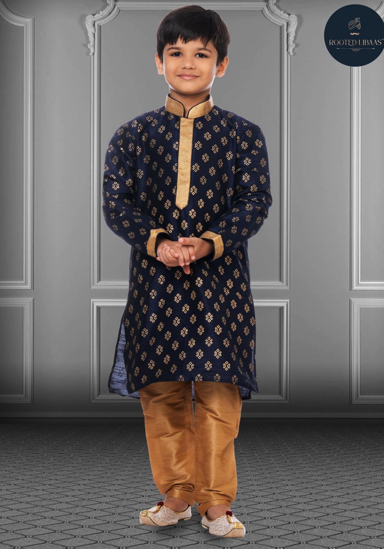 Buy Alluring Silk Dark Slate Grey Kids Kurta Pyjama online.