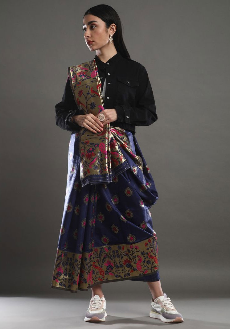 In Pre-stitched saree you will get the saree with stitched plates, belt on the waist and adjustable hooks. So you can wear the saree like a skirt