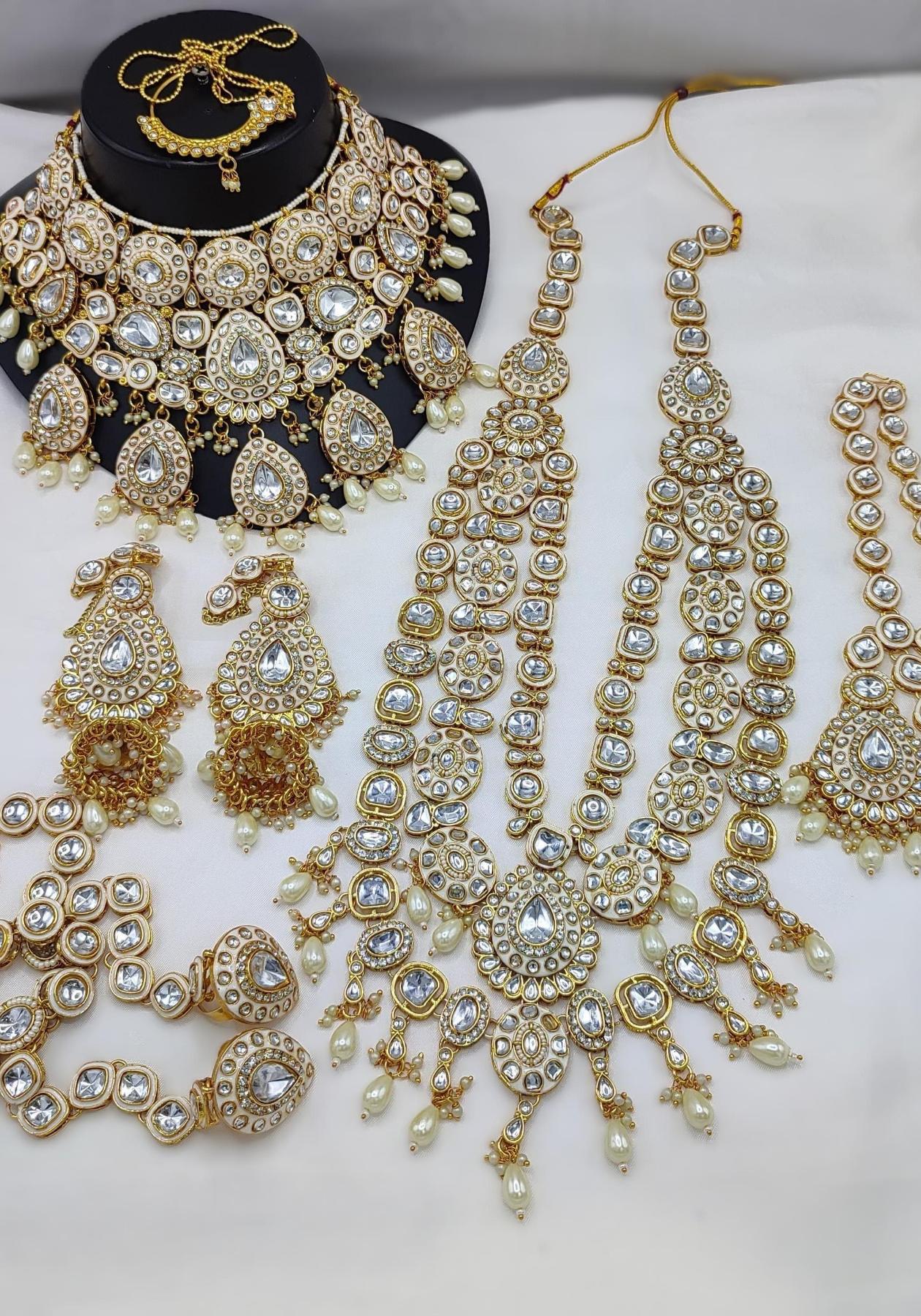 Details: 1 Chokar, 1 Long Necklace, 1 Pai Earrings, 1 Mathapatti ,1 Nath, 1 Pair hathpan,.