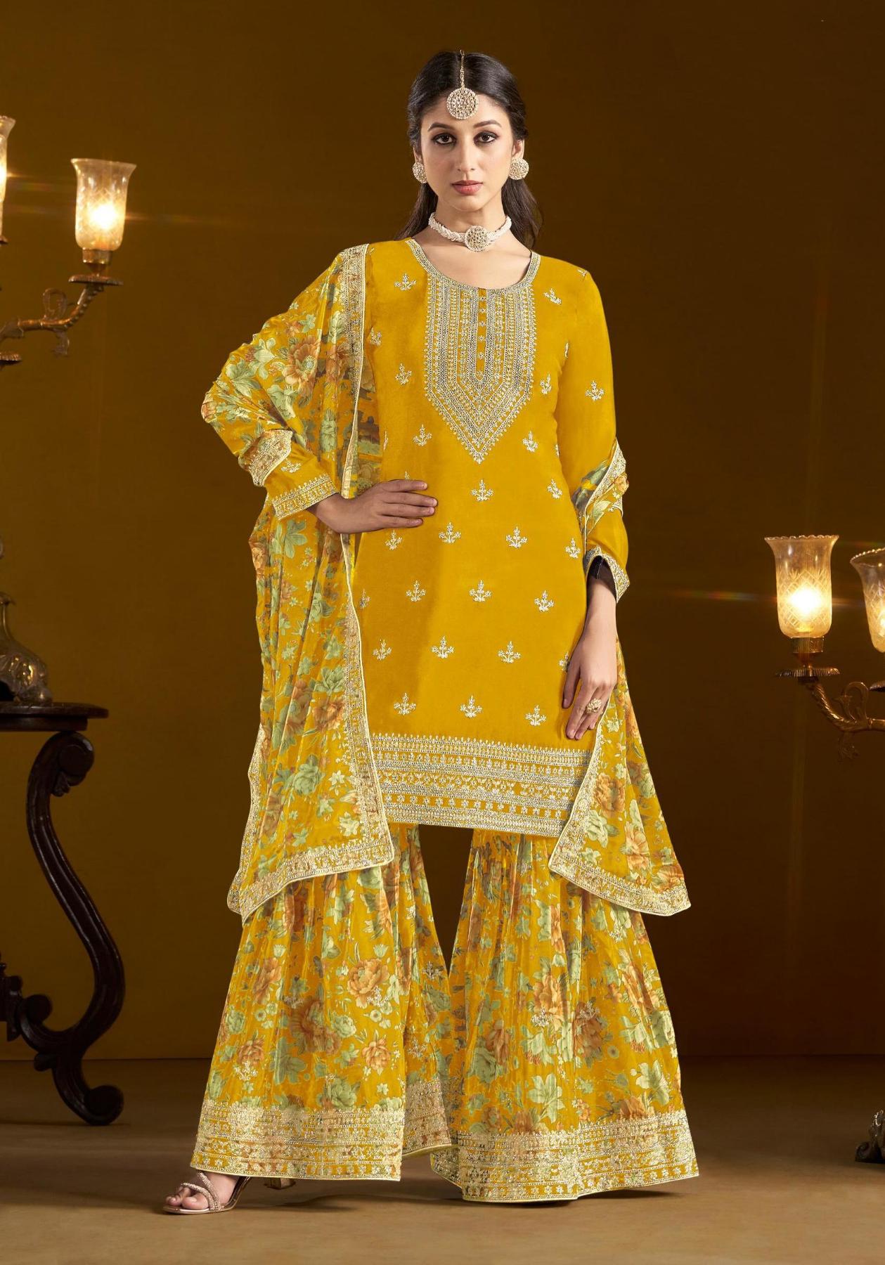 Buy Amazing Chiffon Orange Straight Cut Salwar Kameez online.