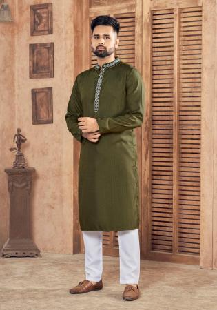 Picture of Amazing Cotton Dark Olive Green Kurtas