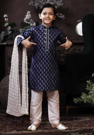 Picture of Amazing Cotton Navy Blue Kids Kurta Pyjama