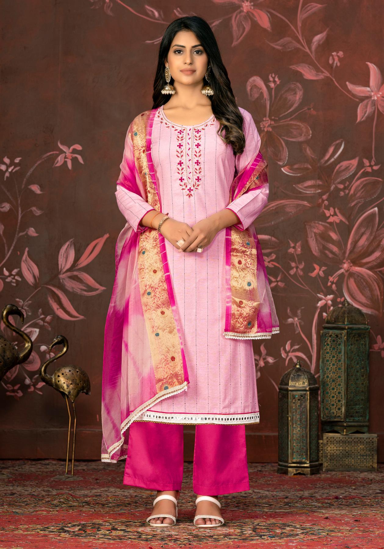 Normally size is measured between the underarm stitching lines from the stressed kameez.