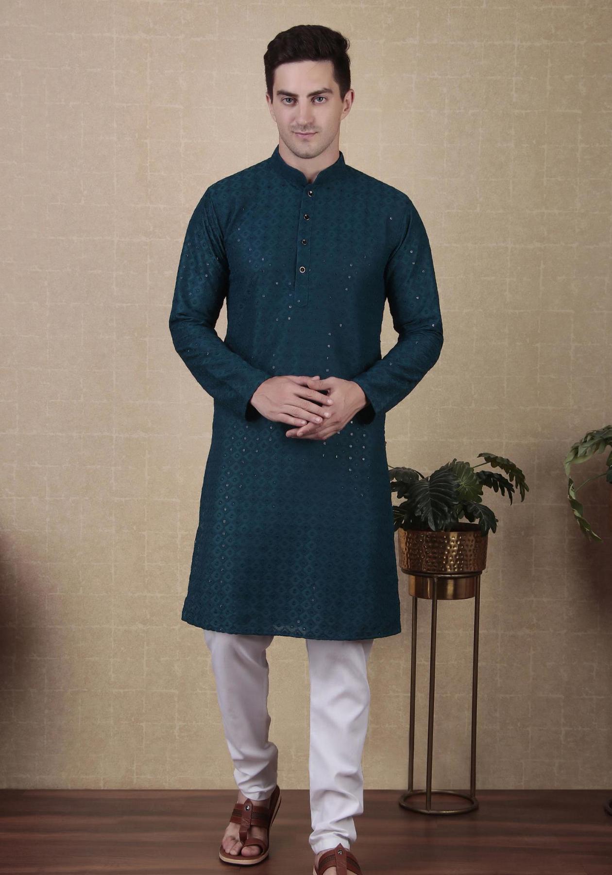 • Amazing Cotton & Silk Navy Blue Kurtas