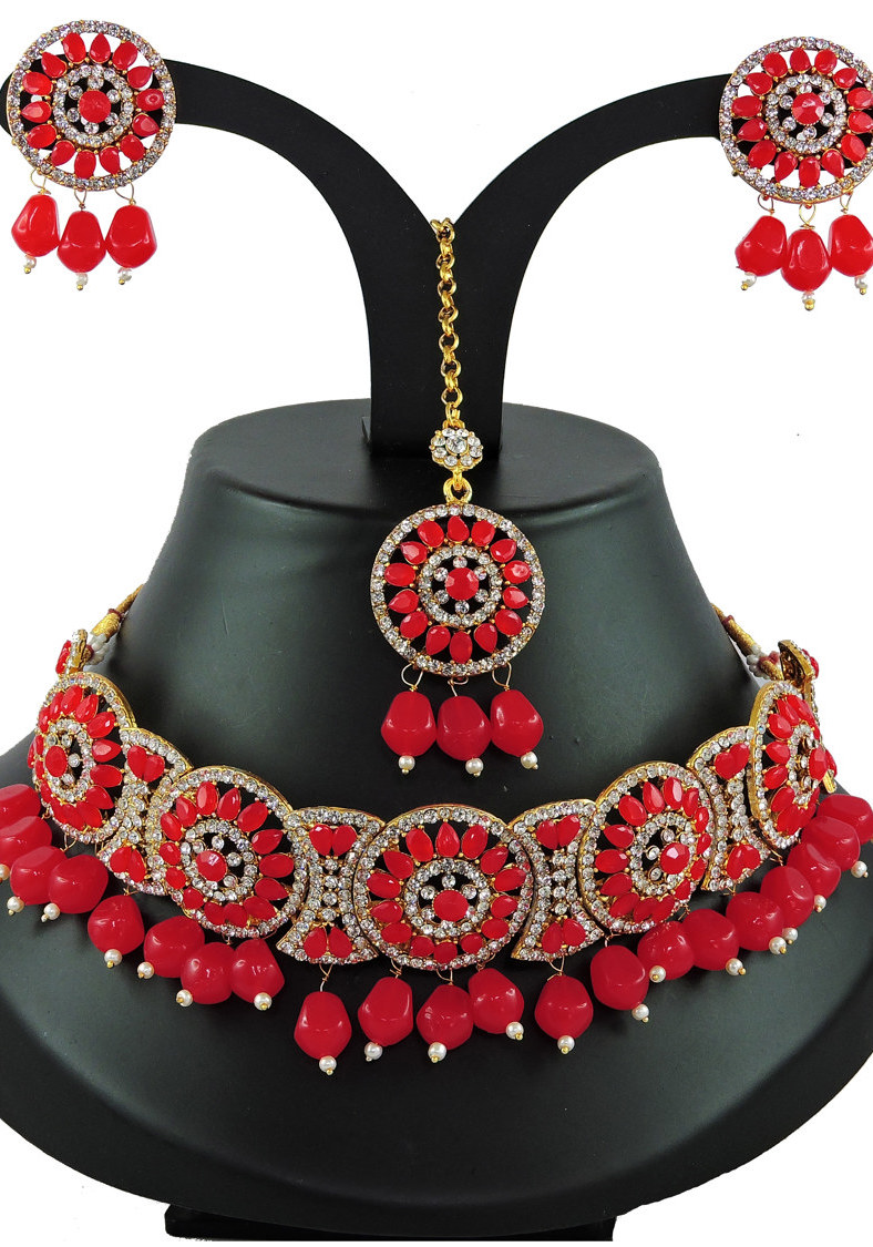 Details: 1 Necklace Set, 2 Earrings, 1 Mang Tikka.