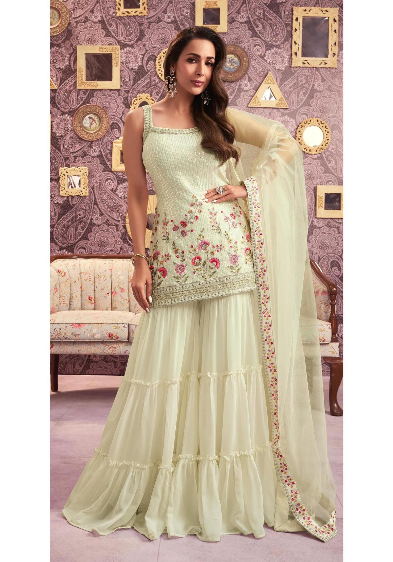 Normally size is measured between the underarm stitching lines from the stressed kameez.