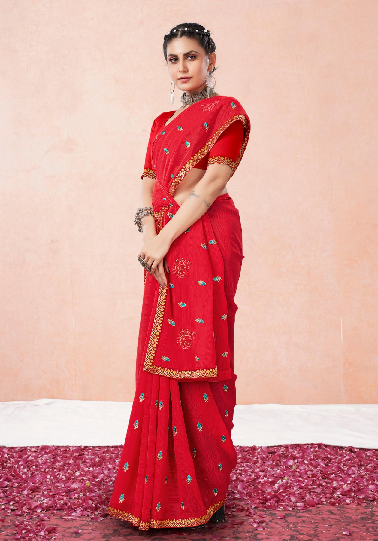 In Pre-stitched saree you will get the saree with stitched plates, belt on the waist and adjustable hooks. So you can wear the saree like a skirt