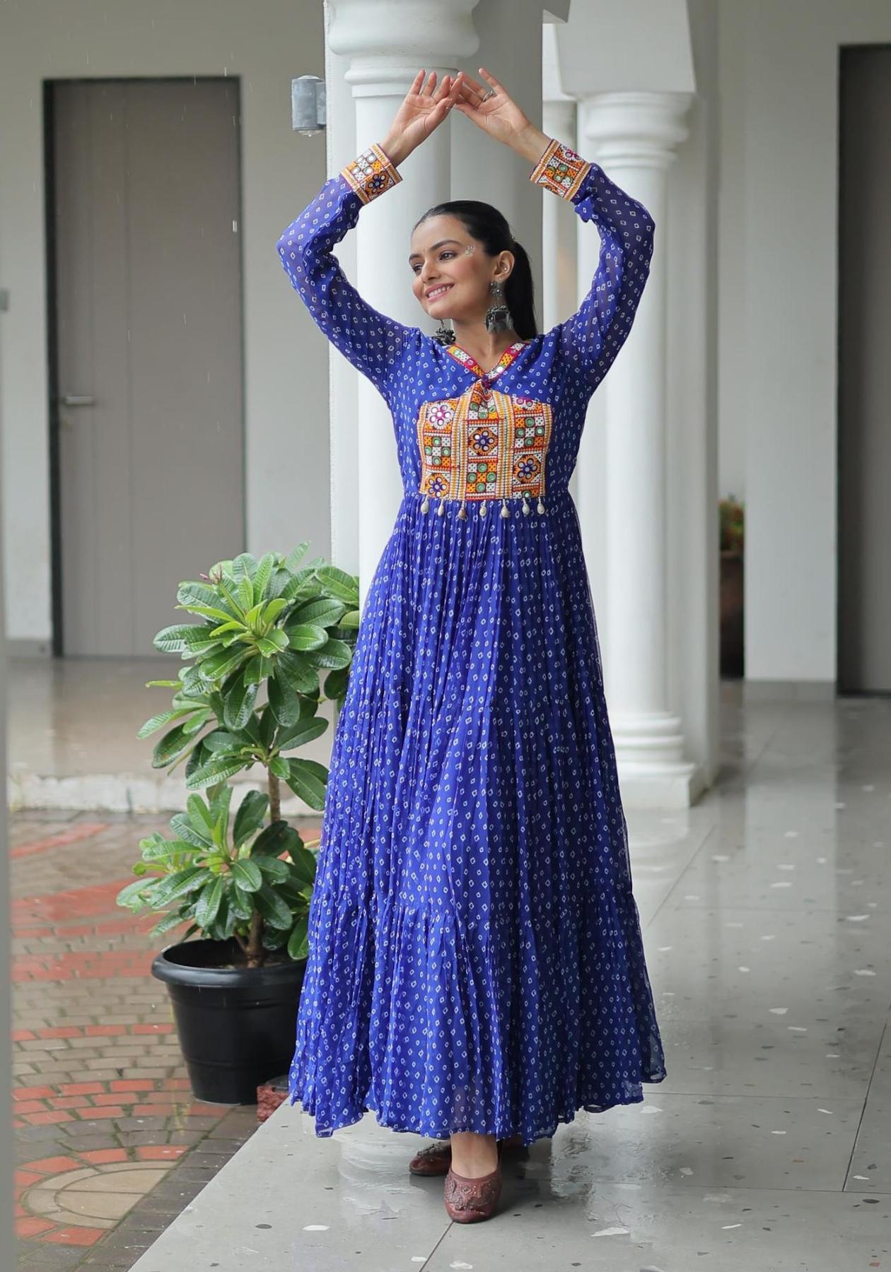 Gown beautifully designed with Bandhani Printed,Kutchi Patch Work.