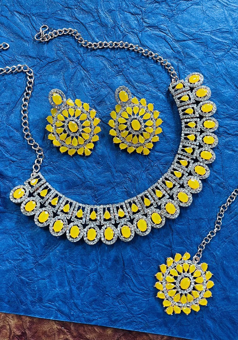 Details: 1 Necklace Set, 2 Earrings, 1 Mang Tikka.