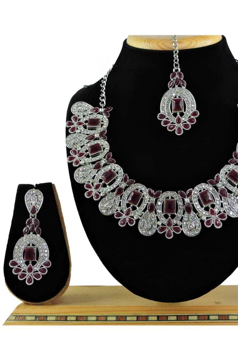 Picture of Amazing Maroon Necklace Set Picture of Amazing Maroon Necklace Set