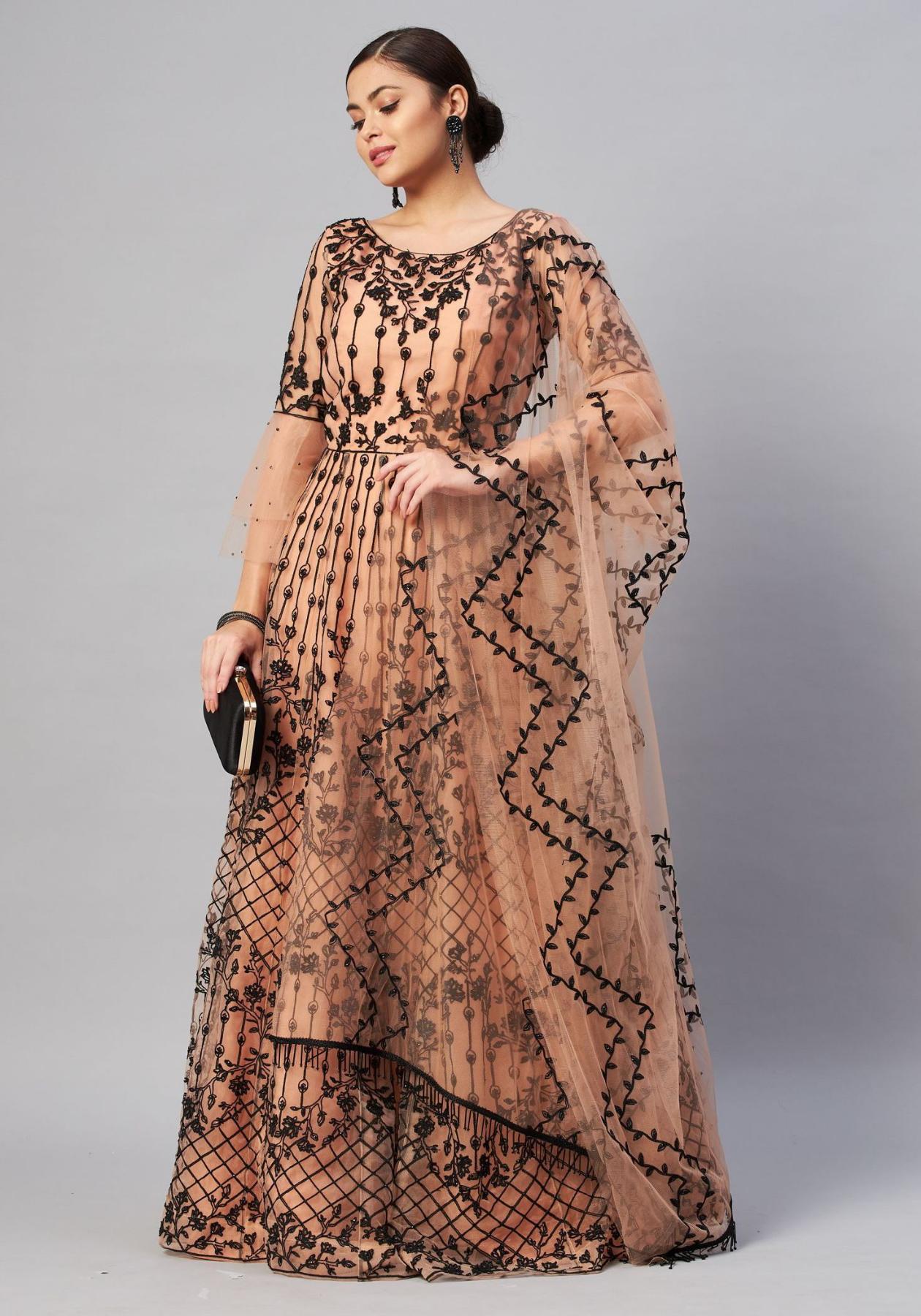 Gown beautifully designed with Thread Embroidery With Stone Work.