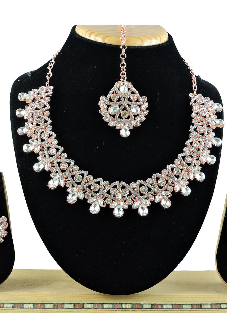 Details: 1 Necklace Set, 2 Earrings, 1 Mang Tikka.