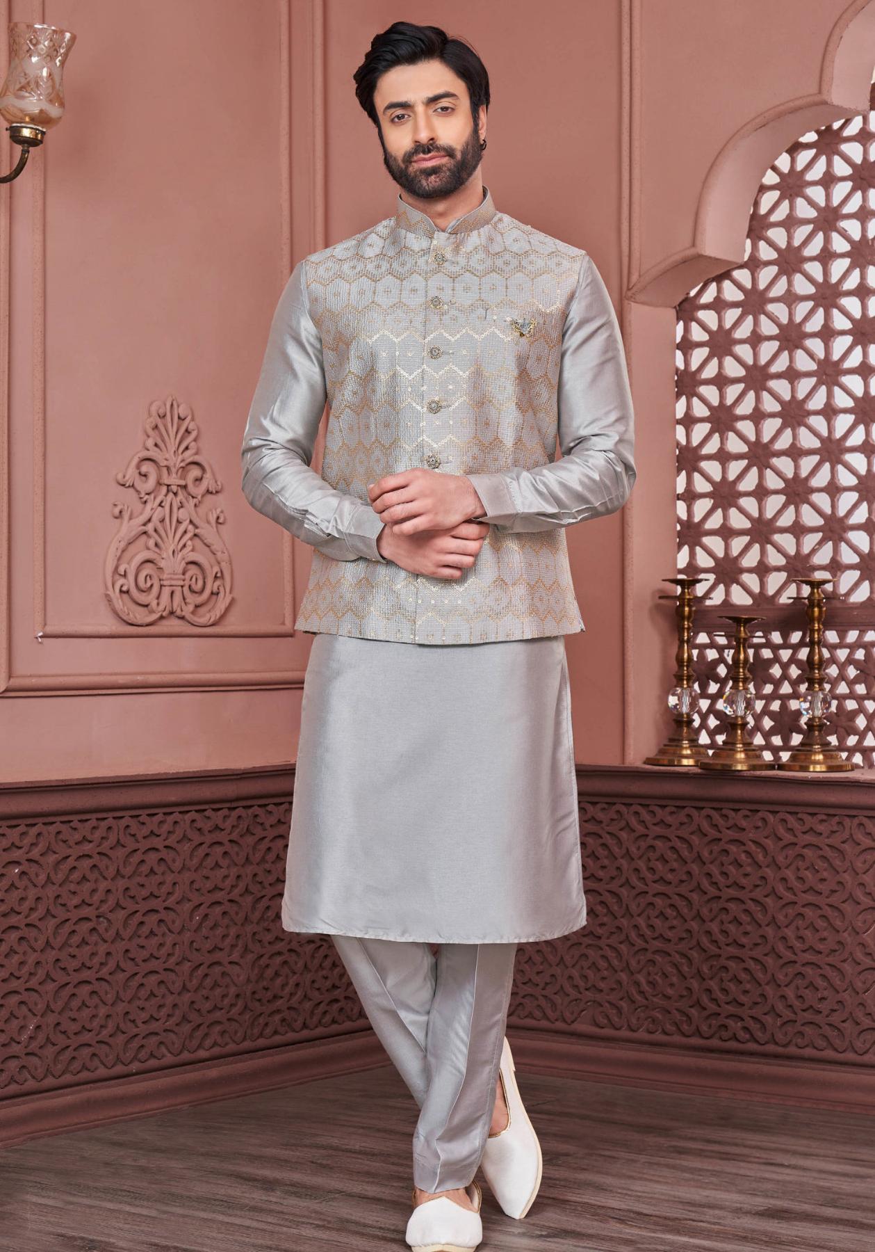 Amazing Silk Light Slate Grey Kurtas