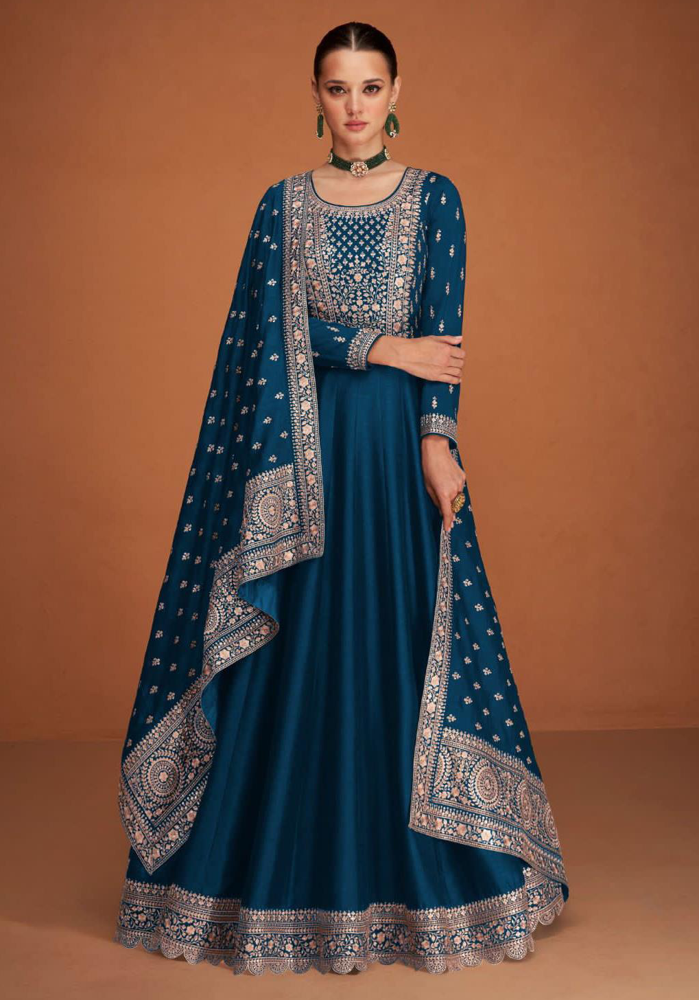 Amazing Silk Navy Blue Anarkali Salwar Kameez