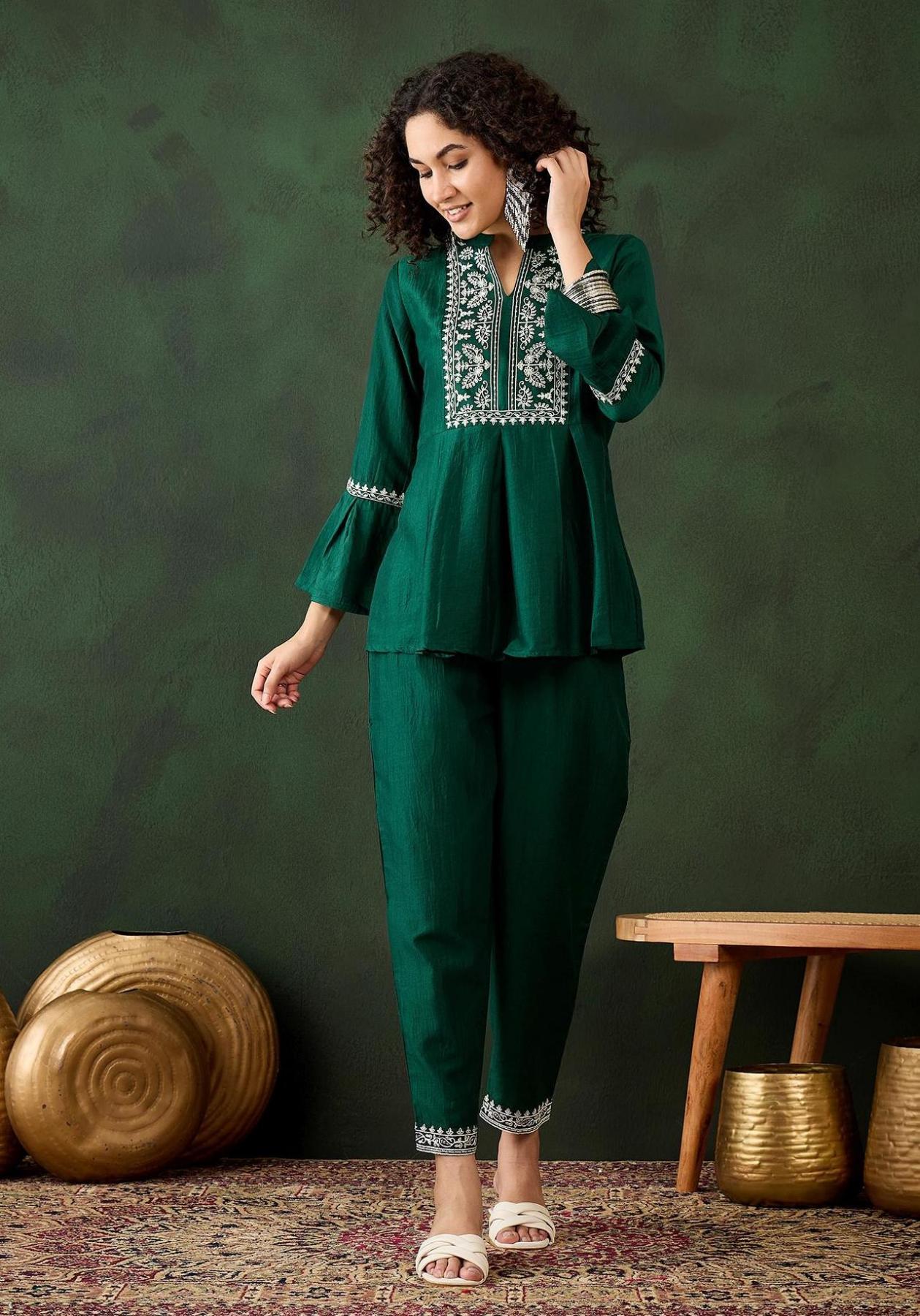 Buy Appealing Chiffon & Crepe Dark Green Western Dress online.