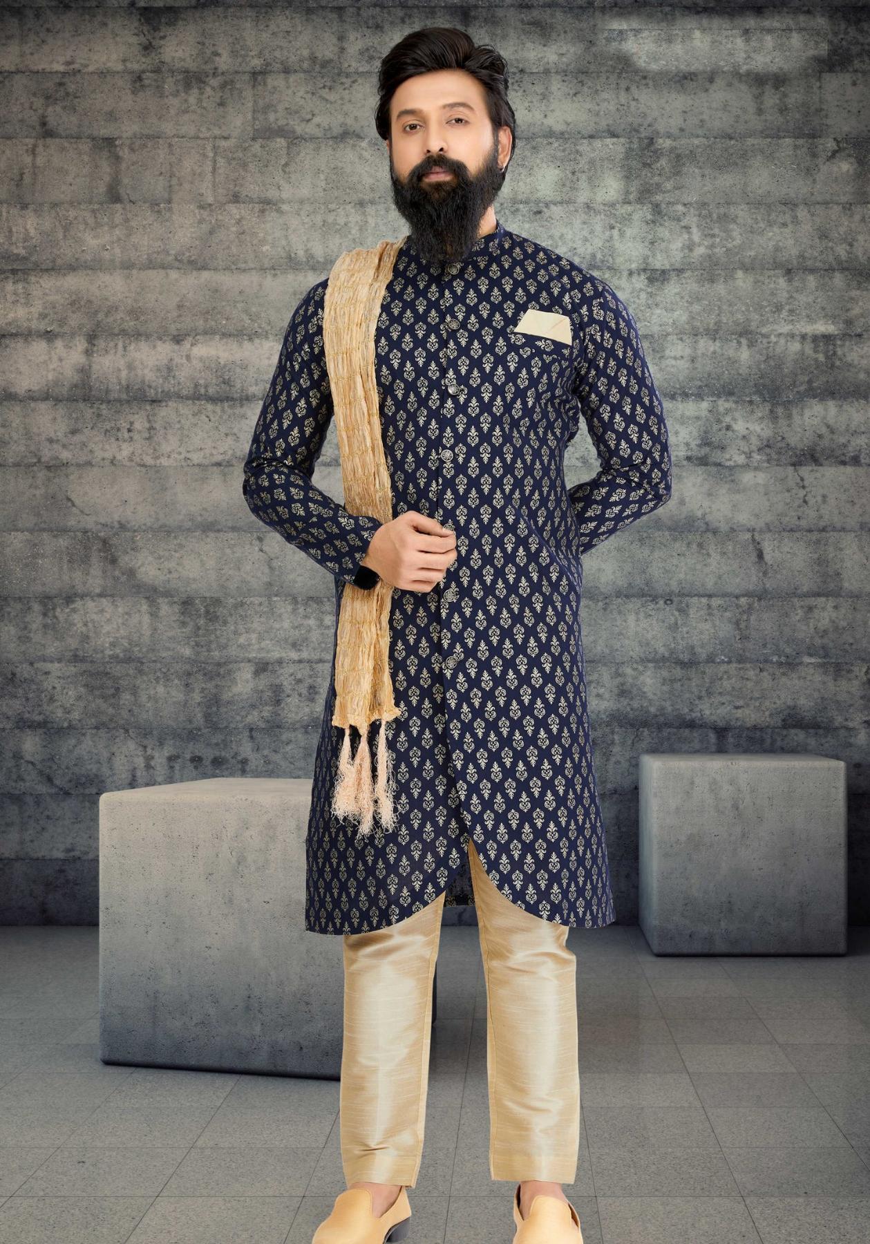 Buy Appealing Cotton & Silk Dark Slate Grey Indo Western online.