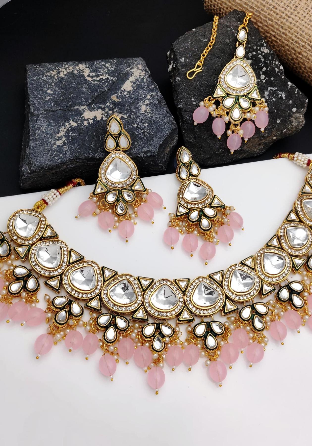 Details: 1 Chokar, 1 Pai Earrings, 1 Maangtika.