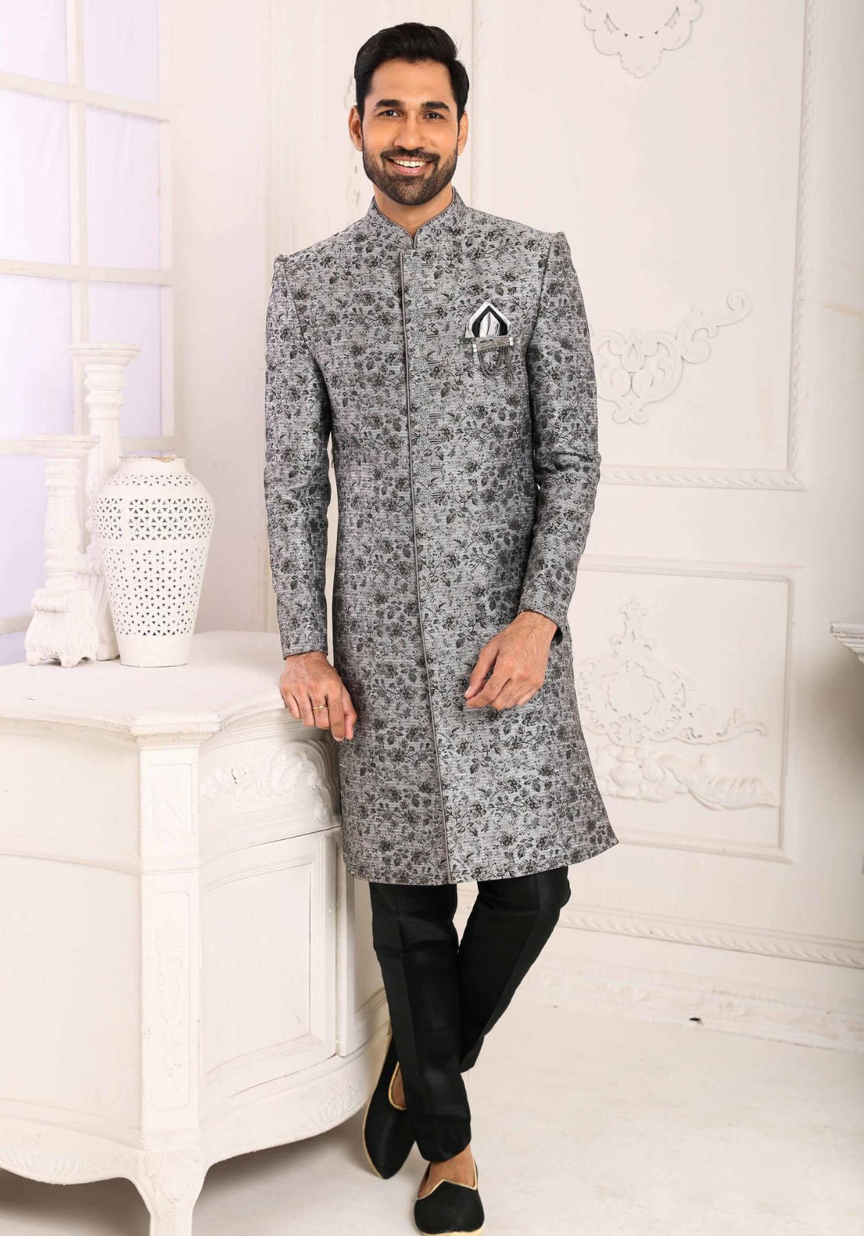Buy Appealing Georgette & Satin Dark Grey Indo Western online.