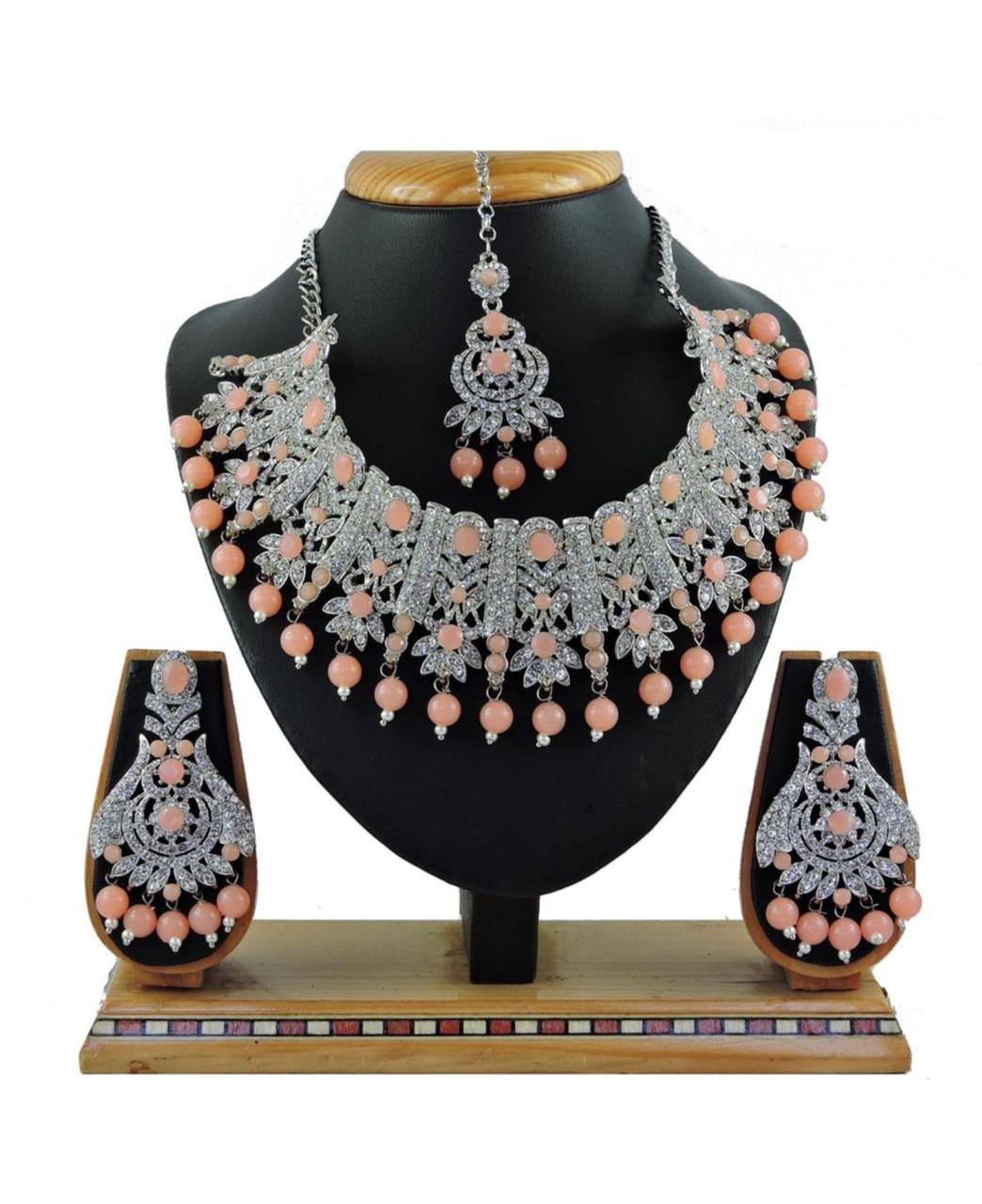 Buy Appealing Peach Necklace Set Jewellery Neckless For Women
