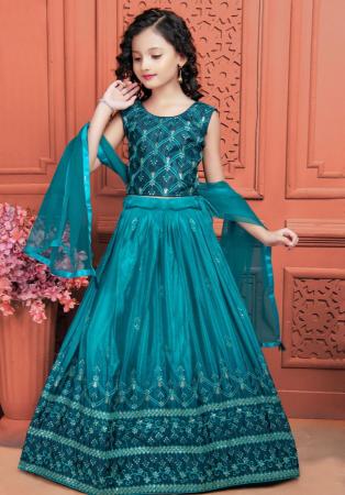 Buy Appealing Silk Dark Cyan Kids Lehenga Choli online.