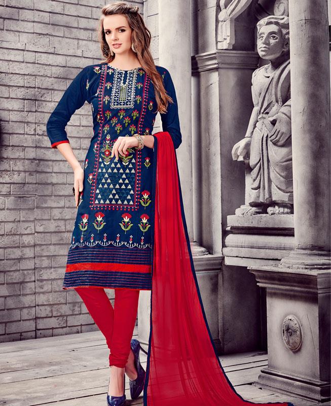Buy Beauteous Navy Blue Cotton Salwar Kameez.