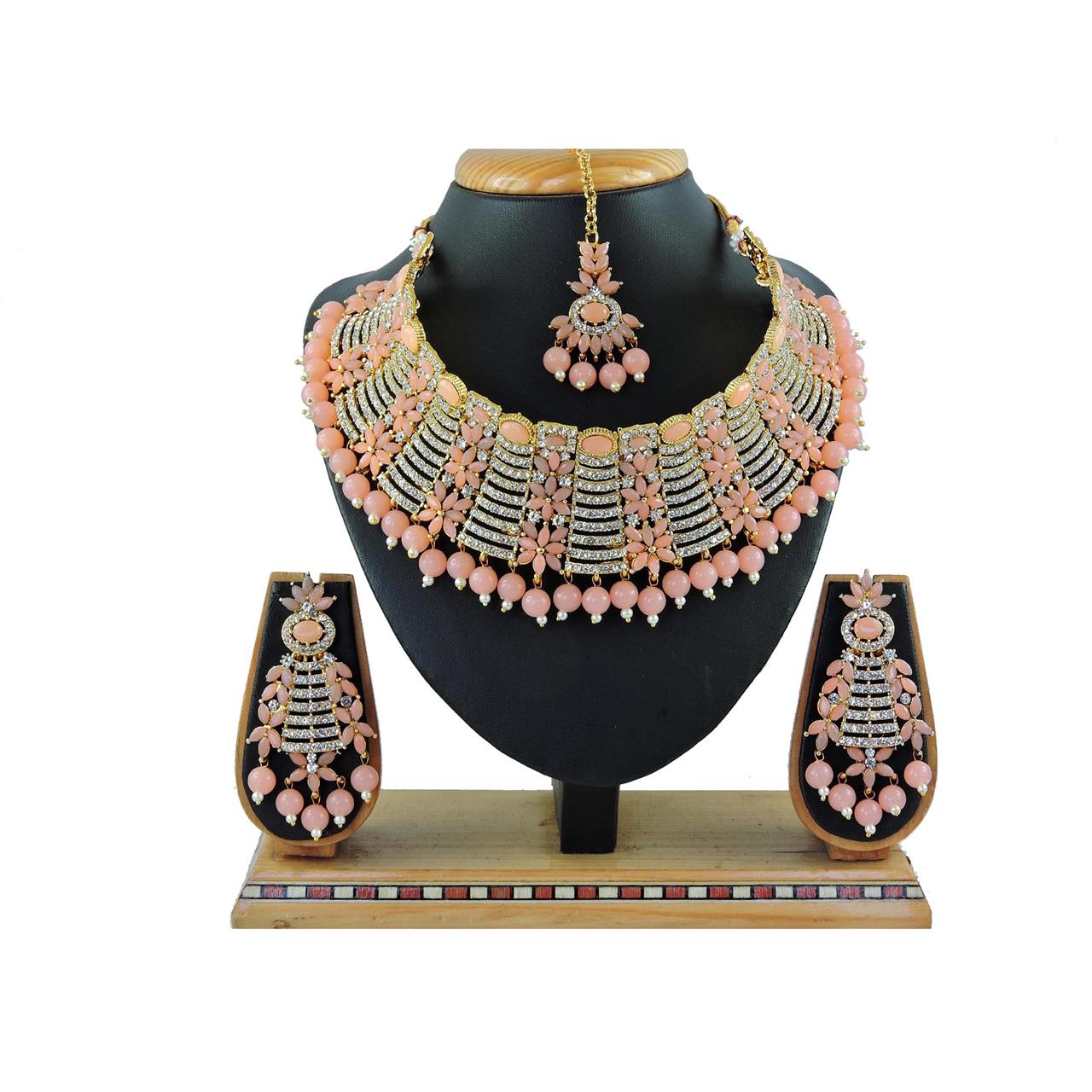 Buy Beauteous Peach Necklace Set Jewellery Neckless For Women