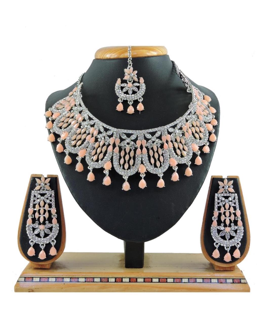 Buy Beauteous Peach Necklace Set Jewellery Neckless For Women
