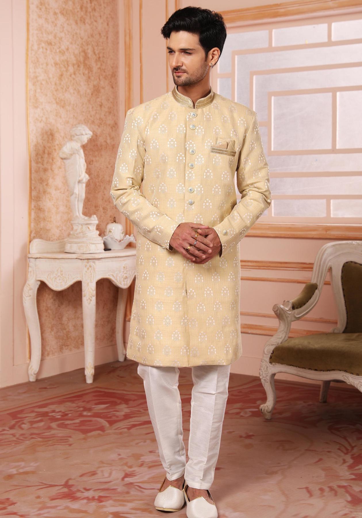 Buy Beauteous Silk Pale Golden Rod Indo Western online.
