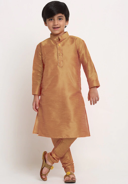 • Beauteous Silk Tan Kids Kurta Pyjama