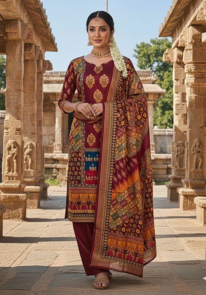 Normally size is measured between the underarm stitching lines from the stressed kameez.