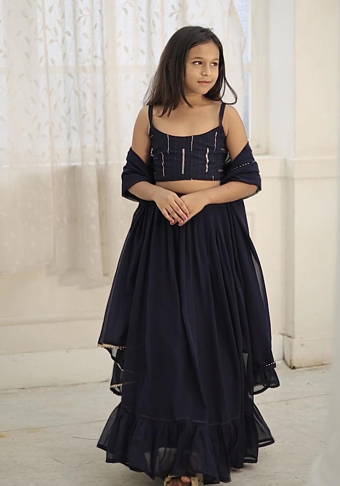 Buy Beautiful Chiffon Navy Blue Kids Lehenga Choli online.