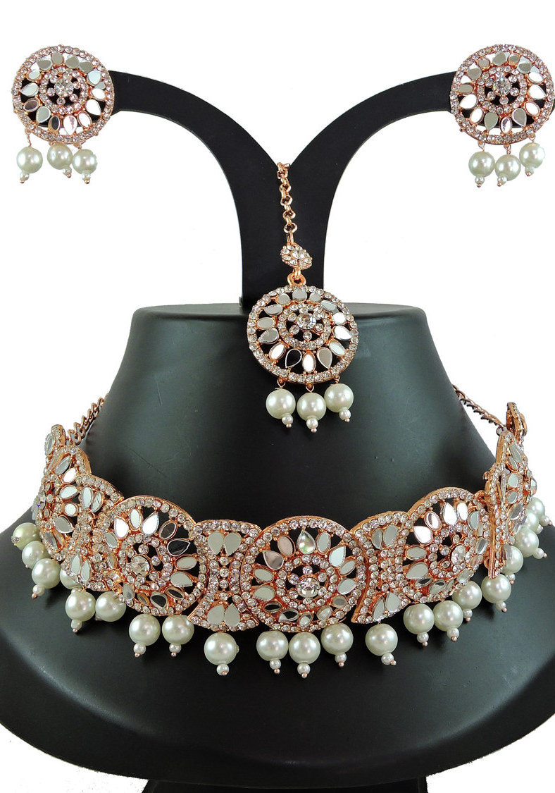 Details: 1 Necklace Set, 2 Earrings, 1 Mang Tikka.