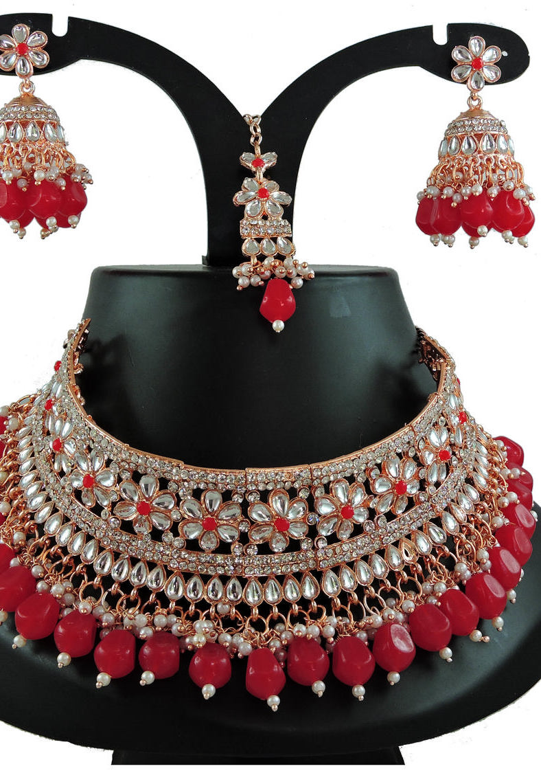 Details: 1 Necklace Set, 2 Earrings, 1 Mang Tikka.