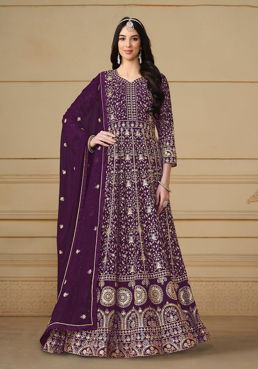 Buy Beautiful Georgette Purple Anarkali Salwar Kameez online.