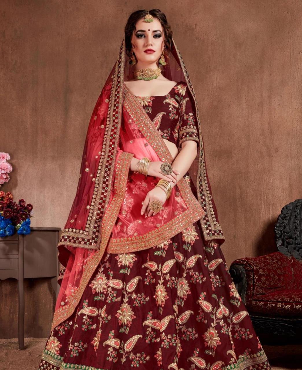 Dupatta Color: 1: Maroon & 2: Crimson Red.