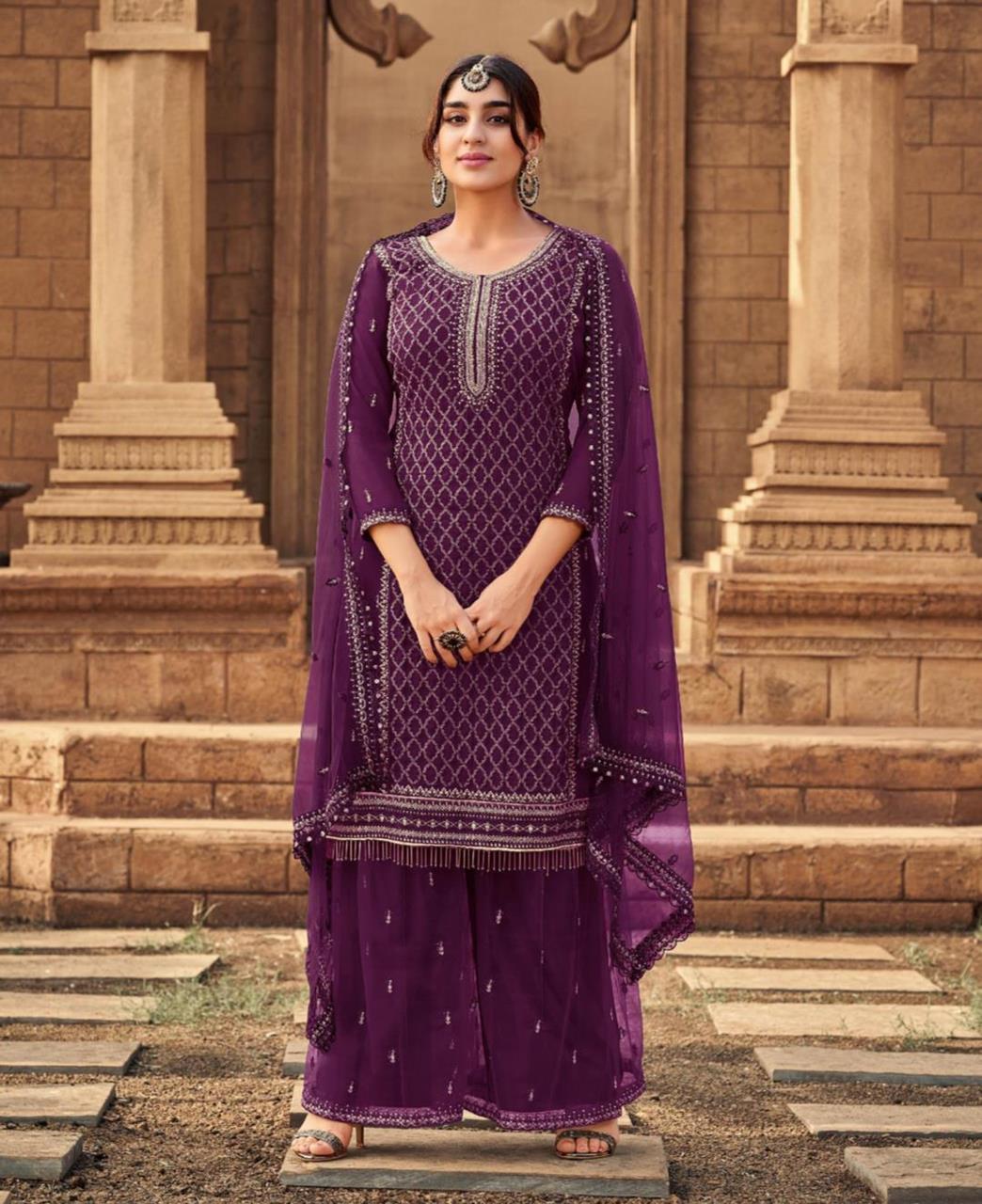 Buy Beautiful Purple Straight Cut Salwar Kameez.