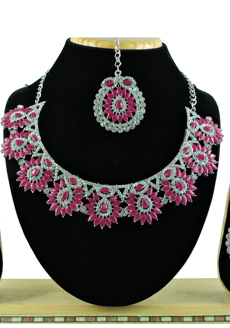 Details: 1 Necklace Set, 2 Earrings, 1 Mang Tikka.