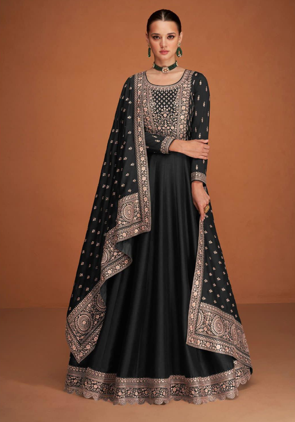 Buy Beautiful Silk Black Anarkali Salwar Kameez online.