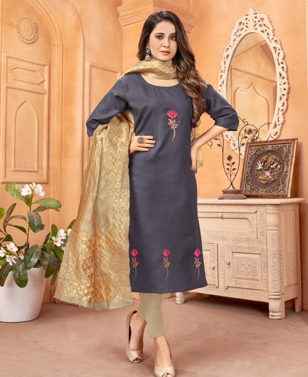 Normally size is measured between the underarm stitching lines from the stressed kameez.