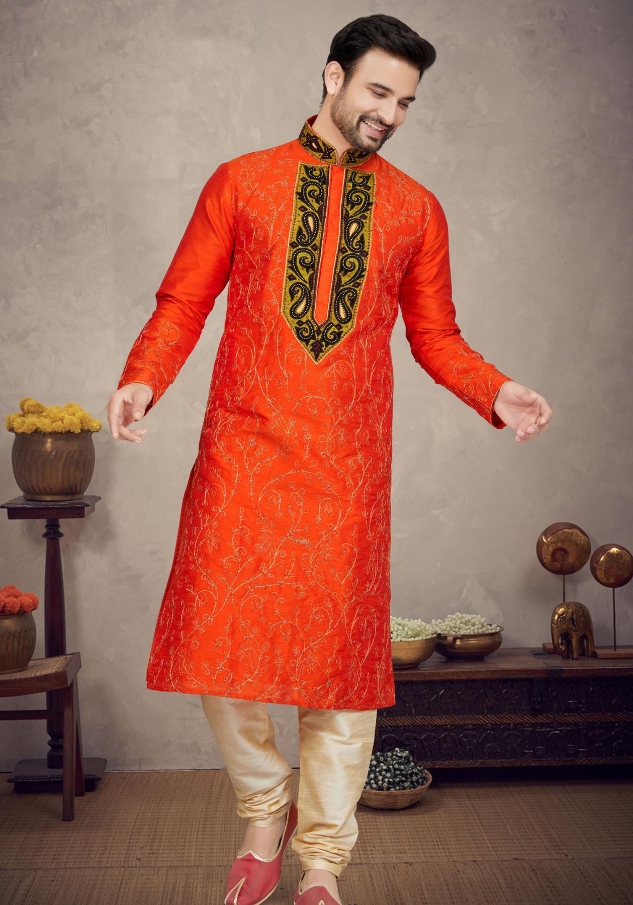 Picture of Bewitching Cotton & Silk Orange Red Kurtas